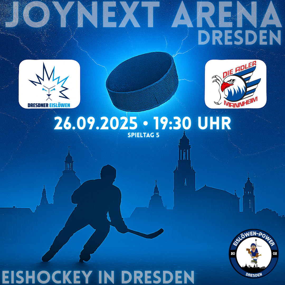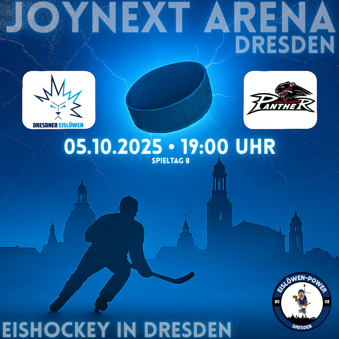 Am Sonntagabend (05.10.2025, 19:00 Uhr) steigt in der Joynext Arena in Dresden das Duell zwischen den Dresdner Eislöwen und den…